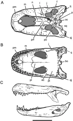 Un autre Alligatoroidea fossile, Deinosuchus, était de taille similaire, mais il vivait au Crétacé supérieur (en Amérique du Nord).