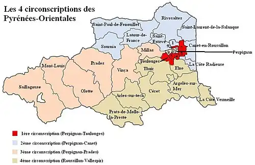 - ↑ EOLAS, « Les conseillers départementaux par canton - Conseil Départemental des Pyrénées-Orientales », sur www.ledepartement66.fr (consulté le )