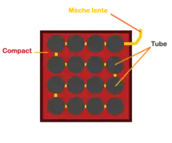Représentation d'un compact avec l'assemblage des tubes les uns avec les autres.