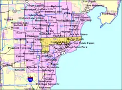 Toute la partie du 14e du Comté de Wayne a été conservée dans le 14e lors du redécoupage de 1992. Il a également conservé la majeure partie de la zone du district de Détroit de l'ancien 1er district de Conyers et de la totalité de Highland Park. En outre, il englobait l'extrême nord-ouest de Détroit et le canton de Redford du 17e district, qui avant le redécoupage était représenté par Sander Levin et qui n'existait plus après 1992 (puisqu'il n'y avait que 16 districts). L'extrémité sud de St. Clair Shores et environ 80 % d'Eastpointe ont été placés dans le district qui est devenu le district de David Bonior, tandis que le reste d'Eastpointe, ainsi que les zones restantes de Warren, Center Line, Maidson Heights et Hazel Park. , Sterling Heights, Utica et Troy ont été fusionnés dans le district qui a fini par être représenté par le représentant du 17e district, Sander Levin, renuméroté 12e post-redistricting.