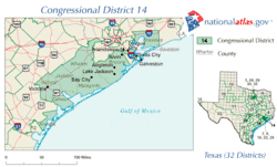 Le 14e district congressionnel du Texas s'étend de Freeport à Orange, au Texas. Il couvrait autrefois la zone située au sud et au sud-ouest de la région du Grand Houston, y compris Galveston, dans l'État du Texas.