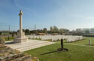 Sur le côté nord du cimetière communal se trouvait un cimetière allemand de près de 600 tombes (1916-1918), maintenant enlevées. Ce cimetière britannique a été créé par des unités de combat, en septembre et . Il comporte 276 tombes de soldats du Commonwealth dont six ne sont pas identifiées. Le cimetière couvre une superficie de 1 011 m2 et est entouré d'un mur en silex et en moellons.