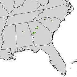 Cette espèce ne pousse à l'état sauvage que dans une zone limitée de l'est des États-Unis, en Alabama, Géorgie et Caroline du Sud.