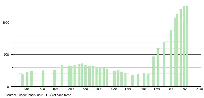 - ↑ Fiches Insee - Populations de référence de la commune pour les années 2006, 2007, 2008, 2009, 2010, 2011, 2012, 2013, 2014, 2015, 2016, 2017, 2018, 2019, 2020, 2021 et 2022.