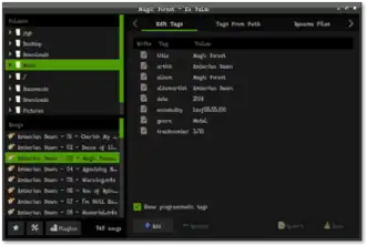 - Navigateur à volets, utilisant des balises entièrement personnalisables (par exemple, genre, date, artiste de l'album...), permettant à l'utilisateur d'explorer sa bibliothèque comme il le souhaite.