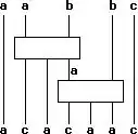 Il se trouve que la réécriture de termes peut se traduire dans un tel système, à condition d’introduire des opérations explicites de duplication, d’effacement et d’échange (analogues aux règles structurelles du calcul des séquents) :