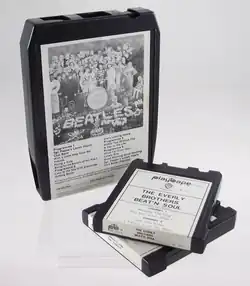 Cette décennie verra aussi l'apparition de lecteurs de rubans magnétiques commerciaux. Des bandes de magnétophone sur bobines de tous les albums ont été manufacturées. À partir du début des années 1960 ont été manufacturées les cartouches 4-pistes Muntz Stereo-Pak (en), qui reproduisaient habituellement à l'identique les deux faces des albums[10]. Par contre, des modifications mineures dans l'ordre des chansons devaient quelquefois être effectuées afin d'équilibrer la durée de chaque programme. Cette technologie est rapidement concurrencées par des cartouches 8-pistes, qui pouvaient elles aussi contenir un album au complet mais divisé en quatre « programmes ». Ces cartouches avaient quelquefois le défaut d'avoir à scinder une chanson en deux parties si le minutage l'imposait ou à souvent modifier la séquence des chansons afin d'éviter de longs silences en fin de programme[11]. Parus en 1966 et commercialisés pour quelques années seulement[12], les PlayTape (en), qui ne contenaient que quatre chansons, ont aussi été mis en marché dont une vingtaine de titres des Beatles[13]. Développée au début de la décade par la compagnie Philips, la cassette audio pouvait contenir un album au complet, une face sur chaque côté, mais dans un boîtier plus compact. La qualité du son, mauvaise au début, s'est améliorée d'année en année jusqu'à devenir, en 1983, le seul format sur ruban disponible en magasin[14]. Dans les années 1980, celles-ci étaient en forte demande[15].