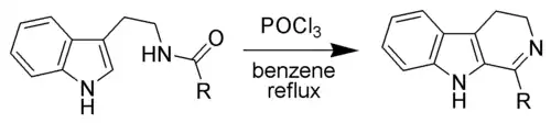 La réaction de Bischler – Napieralski est réalisée à reflux dans des conditions acides et nécessite un agent déshydratant. Le chlorure de phosphoryle (POCl 3 ) est largement utilisé et cité à cet effet. De plus, SnCl 4 et BF 3 éthérate ont été utilisés avec des phénéthylamides, tandis que Tf 2 O et de l'acide polyphosphorique (PPA) ont été utilisés avec des phénéthylcarbamates. Pour les réactifs dépourvus de groupes donneurs d'électrons sur le cycle benzénique, le pentoxyde de phosphore (P 2 O 5 ) dans le POCl 3 au reflux est le plus efficace. Selon le réactif déshydratant utilisé, la température de réaction varie de la température ambiante à 100 °C.