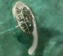 La caye est composée d'une zone bâtie allongée (environ 175 m de long sur 50 m de large et une superficie de 6 700 m2) enfermée dans une large digue. Une végétation terrestre avec des arbres est observée à l’intérieur de la digue. À l'est de la digue se trouve une zone de sable hors de l'eau de 8 200 m2[3],[4].