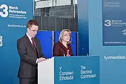 Les résultats du référendum sont annoncés au Senedd à Cardiff le par Jenny Watson (en), présidente de la Commission électorale, à la fois en anglais et en gallois[32],[33].