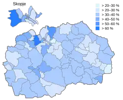 Plus de 90 % des votants se prononcent en faveur de la proposition, pour un total de 609 427 votes Oui sur 666 344 votants, bien au-dessus du seuil de la majorité absolue de 50 % + 1 établi à 333 173 votants par la CEN[7]. Cependant, le référendum n'est pas validé dans la mesure où moins de 50 % des inscrits se sont déplacés aux urnes. Le résultat ne prend par conséquent pas un caractère impératif, laissant libre le parlement de le voter ou non. Outre le succès de la campagne de boycott de l'opposition — bien que non assumée ouvertement en tant que telle sous la pression des gouvernements européens —, le caractère périmé des listes électorales vieilles de seize ans aurait participé à grossir l'abstention, entre 300 000 et 400 000 Macédoniens ayant émigrés depuis, soit entre 17 et 22 % du total des inscrits[2].