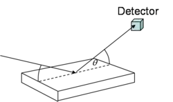 Les rayons X sont aussi réfléchis par certains matériaux et le phénomène est utilisé en interférométrie pour analyser la structure de couches minces et de dépôts à couches multiples en chimie et physique[10]. Il s'agit d'une technique complémentaire à l’ellipsométrie. L'idée est de mesurer la réflexion spéculaire de rayons X sur une surface et de voir toute déviation par rapport aux coefficients de Fresnel. Elle a été développée par le Professeur Lyman G. Parratt de l'université Cornell aux États-Unis et publiée dans un article de Physical Review en 1954[11]. Lorsque la surface n'est pas parfaitement lisse mais a plutôt une densité d'électrons donnée par , alors la réflectivité peut être approximée par[10] :