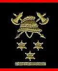 Le grade d'Adjudant-chef (ici à gauche) fait partie des six grades de pompiers supprimés lors de la réforme, celui de Colonel (à droite) est le seul à avoir été créé. | ||
