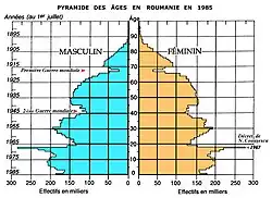 Les Roms sont sédentarisés de force, tandis que Juifs, Allemands, Grecs et Turcs quittent le pays en masse, Israël, l'Allemagne, la Grèce et la Turquie acceptant de payer le droit d'émigration au prorata des études suivies par les partants[18]. Une autre source de devises fortes étrangères pour le régime est l'adoption par des couples occidentaux des orphelins (decrețeii) des cămine (« foyers ») d'État, nombreux à la suite du décret 770 de 1966[19].