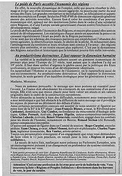 - Article 1 : combattre le centralisme parisien et celui de l’Europe des états pour réduire les inégalités de développement qu’ils engendrent ou accentuent au détriment de la plupart des régions et peuples.