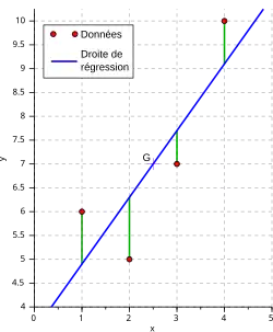 Parmi les modèles de régression linéaire, le plus simple est l'ajustement affine. Celui-ci consiste à rechercher la droite permettant d'expliquer le comportement d'une variable statistique y comme étant une fonction affine d'une autre variable statistique x.