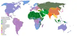 La répartition des religions varie grandement selon les pays et les aires géographiques. Elle est établie à partir du rapport du Pew Research Center de 2012 sur la religion par pays en 2010[1].