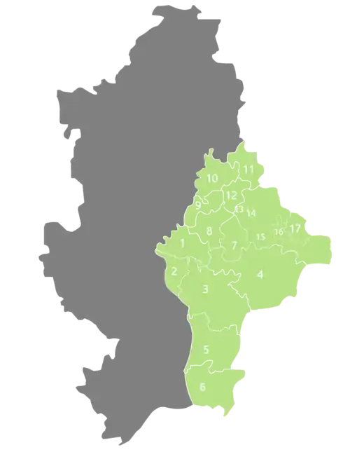 Au 23 février 2022, le territoire contrôlé par la république populaire de Donetsk est organisé en 17 divisions administratives[50] :