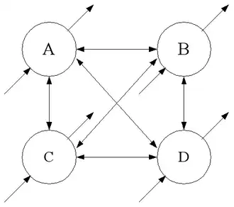 Ce modèle de réseau est constitué de N neurones à états binaires (–1, 1 ou 0, 1 suivant les versions) tous interconnectés. L'entrée totale d'un neurone i est donc :