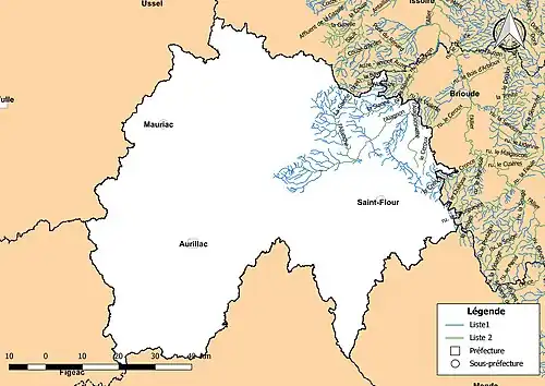 - ↑ « Publication d’une carte indicative des cours d’eau ( Police de l’eau ) », sur le site de la préfecture départementale du Cantal (consulté le ).