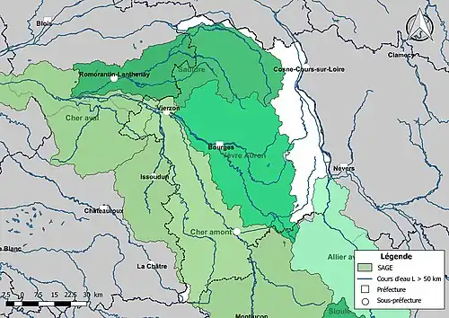 Quatre territoires sont engagés à des stades différents dans une démarche de Sage : « Cher aval», « Cher amont », « Sauldre », « Yèvre - Auron»[16].