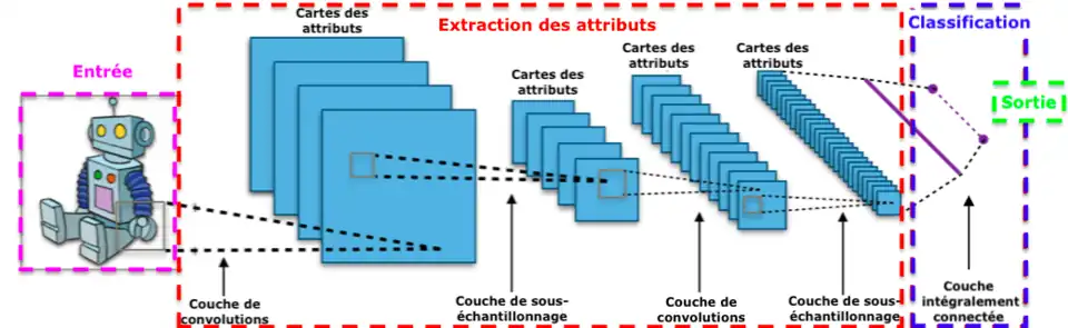 Une architecture de réseau de neurones convolutifs est formée par un empilement de couches de traitement :