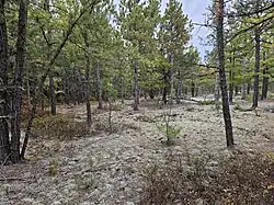 La deuxième classe physionomique de la réserve est la lande boisée (LB). On fait face à cette classe dans la réserve lorsque le recouvrement arborescent est inférieur à celui de la forêt, soit de 5 à 25%[1]. Ces arbres doivent également posséder une hauteur de 3 mètres ou plus[1].