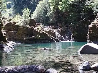 Une grande partie de la zone est recouverte d'une forêt primaire composée du Sapin de Douglas, du Thuya géant de Californie et de la Pruche de l'Ouest. Le saumon Chinook vient se reproduire dans les rivières de la région[3],[4].