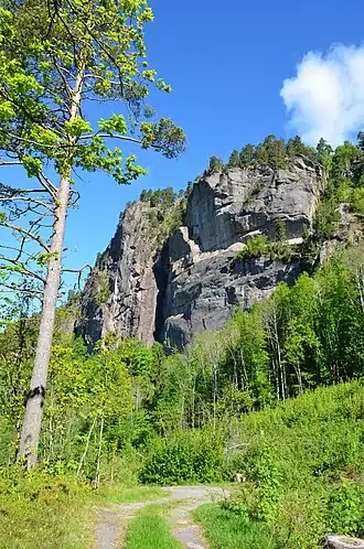Falkeberget est l'un des sommets les plus importants de la réserve. Ici, il y a une paroi rocheuse, en partie avec un surplomb, à une hauteur d'environ 150 mètres. C'est l'un des sites de nidification des faucons qui ont leur territoire autour de l'extrémité nord du lac Farris[2].