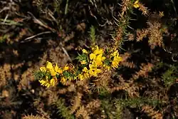 - des landes, dominées par la bruyère à balais (Erica scoparia L.) ou « brande », par l'Ajonc nain (Ulex nanus L.) et par une graminée, la Molinie bleue (Molinia caerulea L.) ;