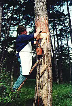 L'extraction systématique de la résine des arbres se fait par gemmage (par un résinier). Les blessures artificielles sont causées par le grattage de l'écorce et la résine qui s'en échappe est recueillie dans un récipient. Les arbres utilisés comprennent le pin, le mélèze et cyprès de l'Atlas (l'arbre à sandaraque). Les résines d'arbres fossiles telles que l'ambre sont identifiées en criblant les zones riches en occurrence (par exemple, les plages), acquise par la prospection ou l'exploitation minière.