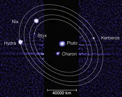 Le système plutonien est proche d'un très complexe système de résonance : Pluton:Charon:Styx:Nix:Kerbéros:Hydra ≈ 1:1:3:4:5:6 (en termes de période autour du barycentre du système plutonien).