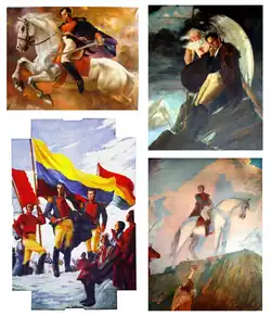 Simón Bolívar a laissé une marque durable dans l'histoire du Venezuela en particulier et de l'Amérique du Sud en général, célébrée sous le nom de « El Libertador »[16],[17]. Le début du culte de Bolívar s'est produit avec le transfert de la dépouille mortelle de Bolívar, alors à Santa Marta, vers la capitale Caracas, avec un enterrement en grande pompe[18]. Cette cérémonie était le résultat de la campagne du général José Antonio Páez, qui obtint l'approbation par décret de la glorification de Bolívar en 1842.