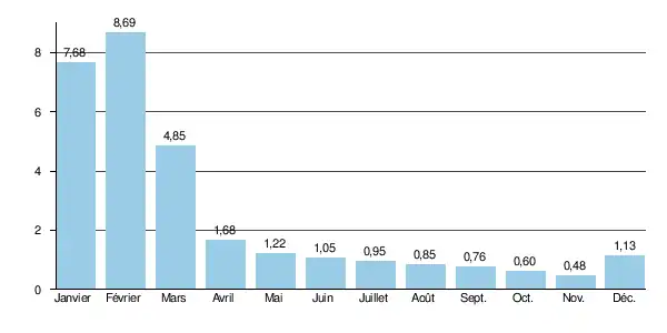La lame d'eau écoulée cette partie du bassin versant de la rivière - de loin la plus importante du point de vue de l'écoulement - atteint 17,5 millimètres par an.