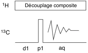 Dans l'expérience simple d'acquisition d'un spectre du carbone 13, on utilise une séquence d'impulsions simple avec découplage continu du proton. Le découplage permet notamment d'améliorer le rapport signal/bruit du spectre, puisque chaque signal du carbone se transforme en singulet (sauf présence d'autres noyaux actifs en RMN) mais on profite également de l'effet Overhauser nucléaire.