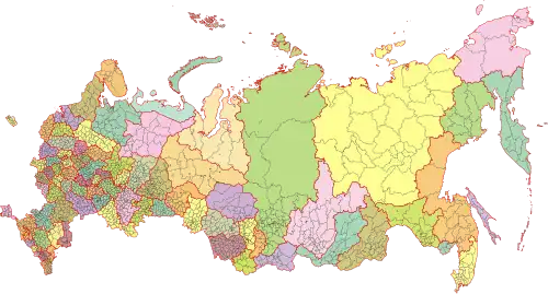 Chaque subdivision de premier niveau (sujets de la fédération de Russie) est divisée en raïons ou équivalents.