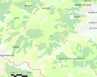Les communes les plus proches[Note 1] sont[4] : Sournia (4,3 km), Vira (4,7 km), Prats-de-Sournia (6,0 km), Campoussy (6,1 km), Gincla (6,3 km), Montfort-sur-Boulzane (6,8 km), Fenouillet (6,8 km), Le Vivier (6,9 km).