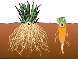 - Racines napiforme : racine de navet par exemple.