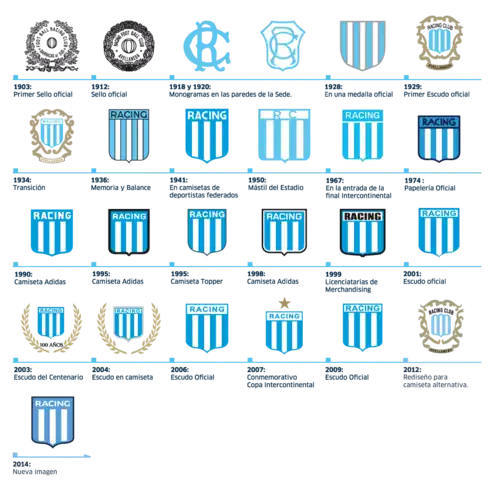 Tous les emblèmes historiques du Racing Club de Avellaneda
