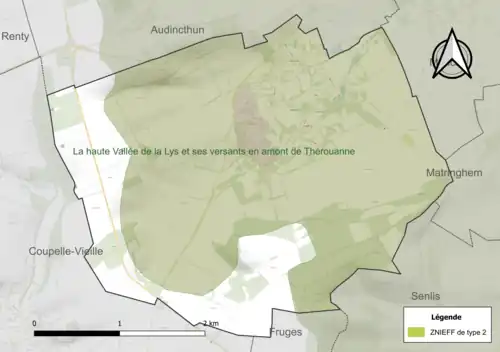 Le territoire communal comprend une ZNIEFF de type 2[Note 2] : la haute vallée de la Lys et ses versants en amont de Thérouanne. L'entité paysagère de la haute vallée de la Lys et ses versants s'étire sur une vingtaine de kilomètres du Nord au Sud pour moins de dix d'Est en Ouest dans le Haut Artois[11].