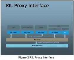 On peut noter que le RIL ne communique généralement pas directement avec le modem. Au lieu de cela, la dernière interface vers le modem est typiquement le pilote standard fourni par le fabricant du matériel.