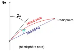 Les ondes radioélectriques se propagent à la surface de la terre selon une orthodromie. En toute rigueur, l'azimut d'arrivée de l'onde mesurée par le récepteur n'est donc pas le relèvement de l'émetteur.