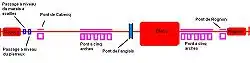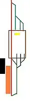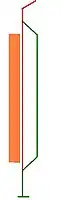 Sur le plan schématique des voies (voir à droite), la voie principale est représentée en rouge. Les voies de manœuvres sont représentées en vert et le quai en rose.