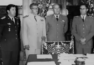 Durant cette période, le gouvernement est composé de Ramon Castro Jijón (Commandant général de la Marine), du Colonel Luis Cabrera Sevilla (Commandant général de l'Armée), du Lieutenant colonel Guillermo Freile Posso (Commandant général de l'Armée de l'Air) et du Colonel Marcos Gándara Enríquez (Sénateur pour les Forces Armées)[2].