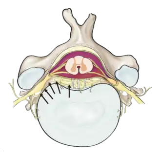 Ils pénètrent ensuite à nouveau dans le foramen intervertébral et innervent les articulations zygapophysaires, l'anneau de cartilage fibreux du disque intervertébral, ainsi que les ligaments et le périoste de la cavité spinale. Le noyau gélatineux du disque intervertébral ne reçoit pas d'innervation.