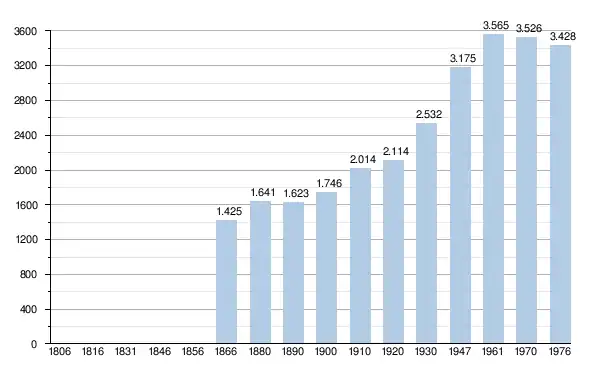 - Sources : INS, Rem. : 1831 jusqu'en 1970 = recensements, 1976 = nombre d'habitants au 31 décembre[2].