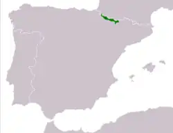 Cette espèce est endémique de l'Ouest des Pyrénées. Elle se rencontre entre 800 et 2 100 m d'altitude dans le nord-est de la Navarre, dans le nord de la province de Huesca en Espagne et dans le sud des Pyrénées-Atlantiques en France[1],[2].