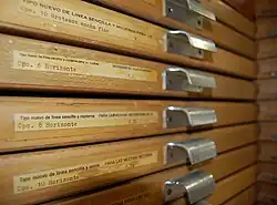 Le typographe travaille généralement debout, mais certains rangs peuvent être munis d’un siège mobile.