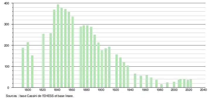 - ↑ Fiches Insee - Populations de référence de la commune pour les années 2006, 2007, 2008, 2009, 2010, 2011, 2012, 2013, 2014, 2015, 2016, 2017, 2018, 2019, 2020, 2021 et 2022.