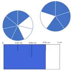 Il y a donc 56/8 = 7 fois plus de pommes que de bananes, la fraction 56/8 permettant de calculer l’importance du déséquilibre exprimé par le rapport, qui pourrait s’écrire également pommes/bananes = 7:1 ou simplement pommes/bananes = 7 (d’où des confusions possibles, liées aux notations parfois similaires entre fraction et rapport, car ici il y a bien 7 fois plus de pommes que de bananes, et non l’inverse comme l’indiquerait la notation 56/8).